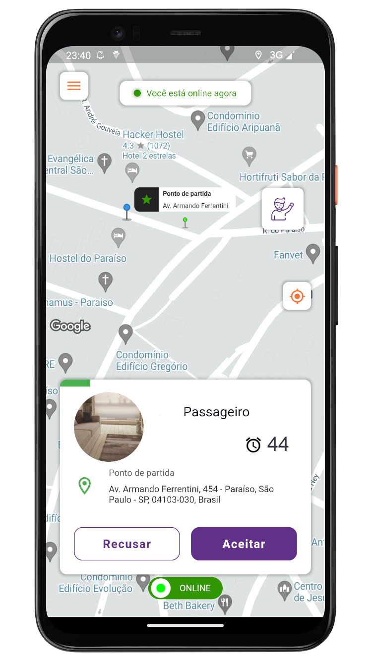 Você pode preencher o requerimento no Aplicativo Taxi Corporativo NN